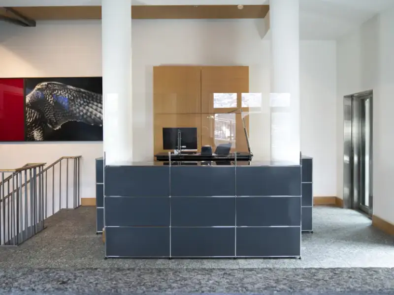 Passend zum USM Möbelbausystem gibt es verschiedene Varianten, mit denen Sie bestehende Empfangstheken schnell aufrüsten können.
