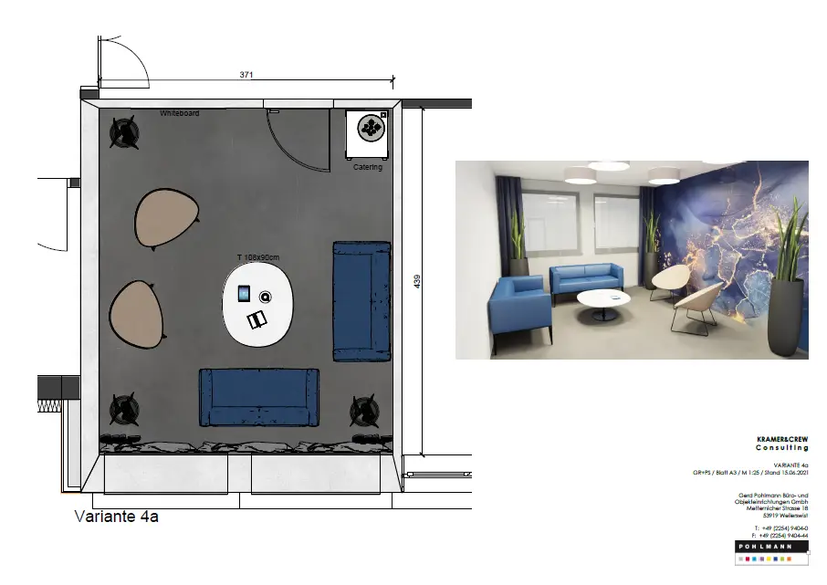 Basierend darauf, arbeiten wir Raumgestaltungs- und Einrichtungslösungen aus, erstellen einen Anforderungskatalog sowie einen virtuellen 3D-Möblierungs- bzw. Entwurfsplan und legen Ihnen eine detaillierte Kostenaufstellung vor.