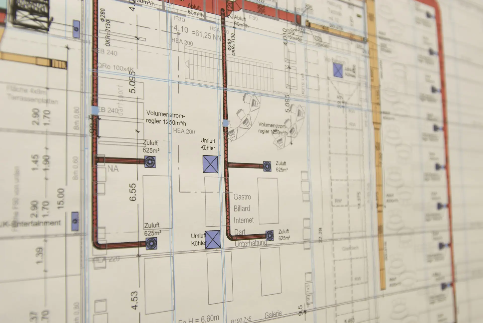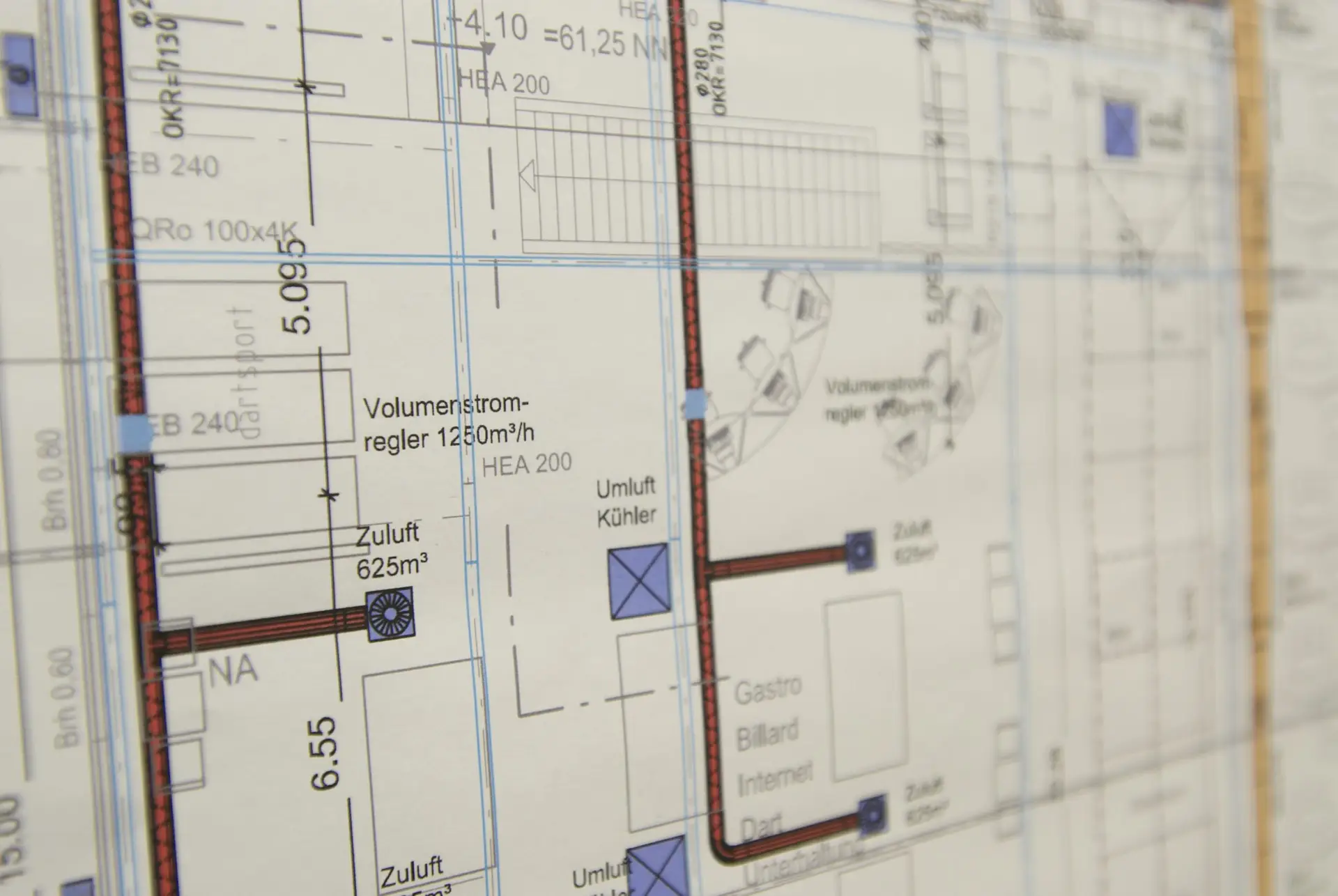 In der Bedarfsanalyse besprechen wir mit unseren Kunden die Rahmenbedingungen des Neubaus oder der Sanierung. Dabei berücksichtigen wir grundsätzliche Themen wie die Branchen, in denen unsere Kunden tätig sind. Mit unserer Erfahrung ergeben sich daraus bereits erste Anforderungen für den Bau, die wir aufnehmen und in immer weiteren Details festhalten. Optionen zur möglichen Zweitverwendung des Neubaus berücksichtigen wir hier ebenfalls.