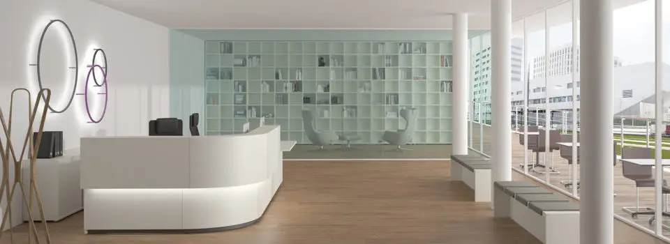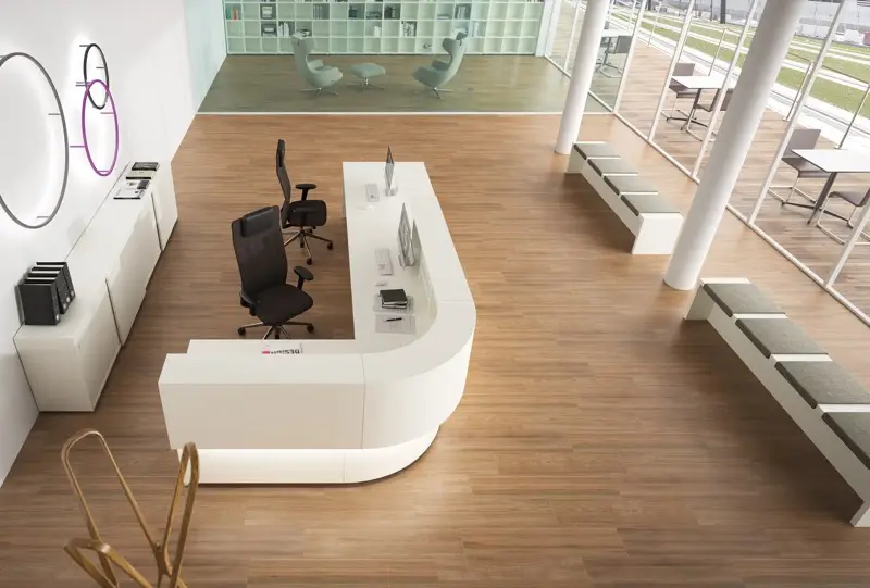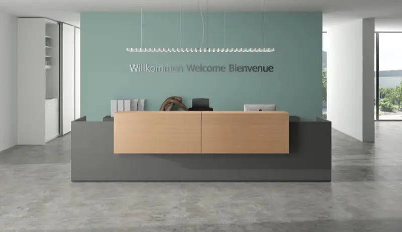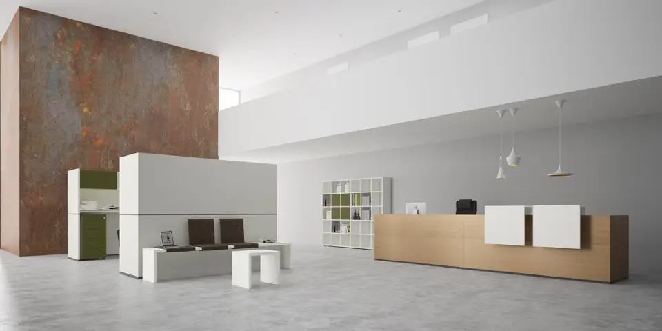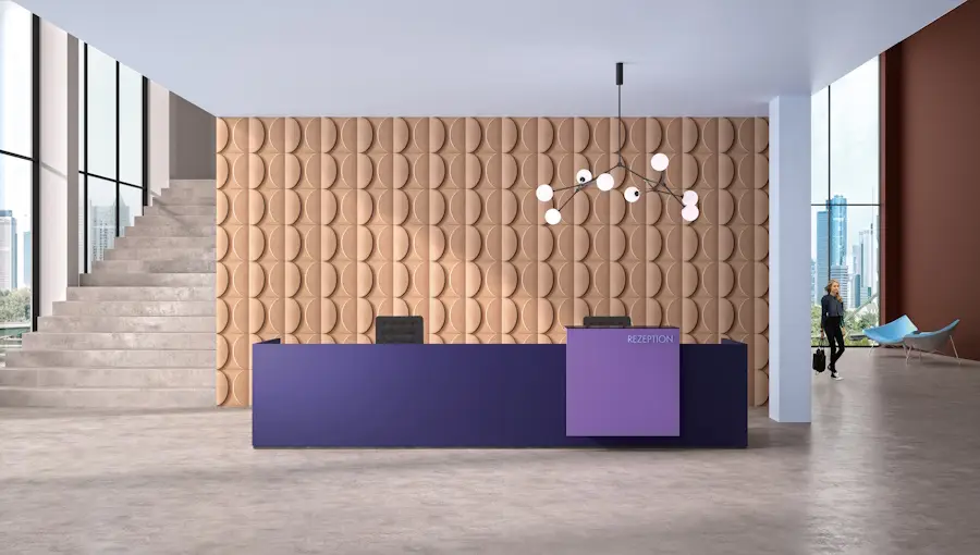 Mit einer ganzheitlichen Raumlösung, sowie hochwertigen Theken, Countern, Tresen, Beistelltischen, Boards, Sesseln, Polstermöbeln und Besucher-Stühlen, unterstützen wir Sie dabei, die positive Außenwirkung Ihres Unternehmens nachhaltig zu steigern.  Auch für die optimale Nutzung der Mittelzonen in Großraumbüros helfen wir Ihnen weiter. Hier ist ein akustisches Gesamtkonzept sinnvoll.