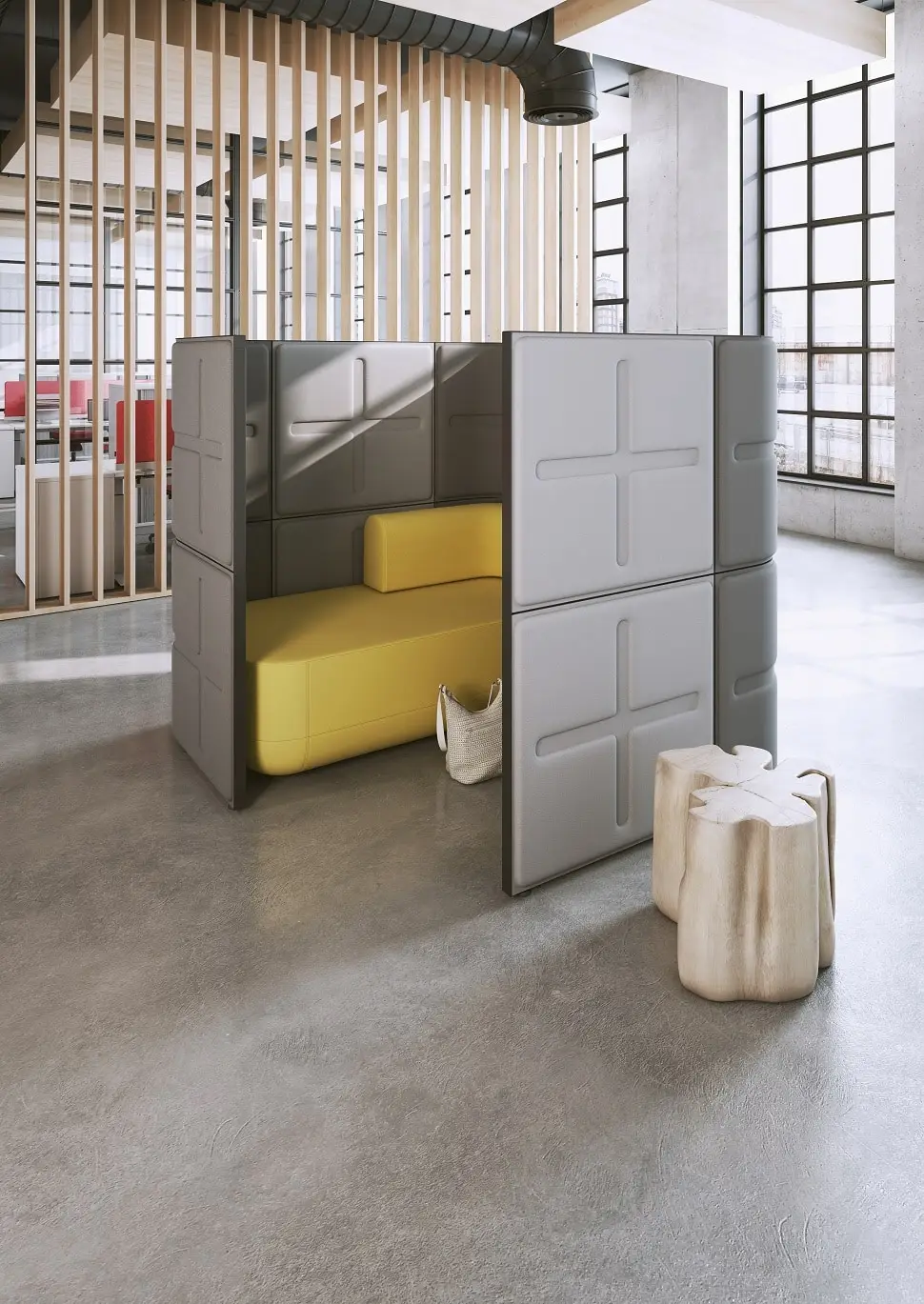 - mobile Raumteiler mit Akustikfunktion