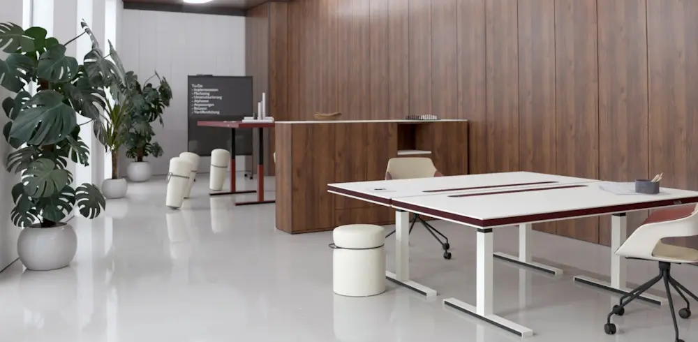 Der 848 table von KLAIN ist ein modular aufgebauter, höhenverstellbarer Tisch in ikonischem Design. Er beeindruckt durch seine hochwertige Verabeitung und durch seine vielseitige, perfekt konfigurierbare Tischausstattung und ist mit diversem Zubehör ergänzbar.
