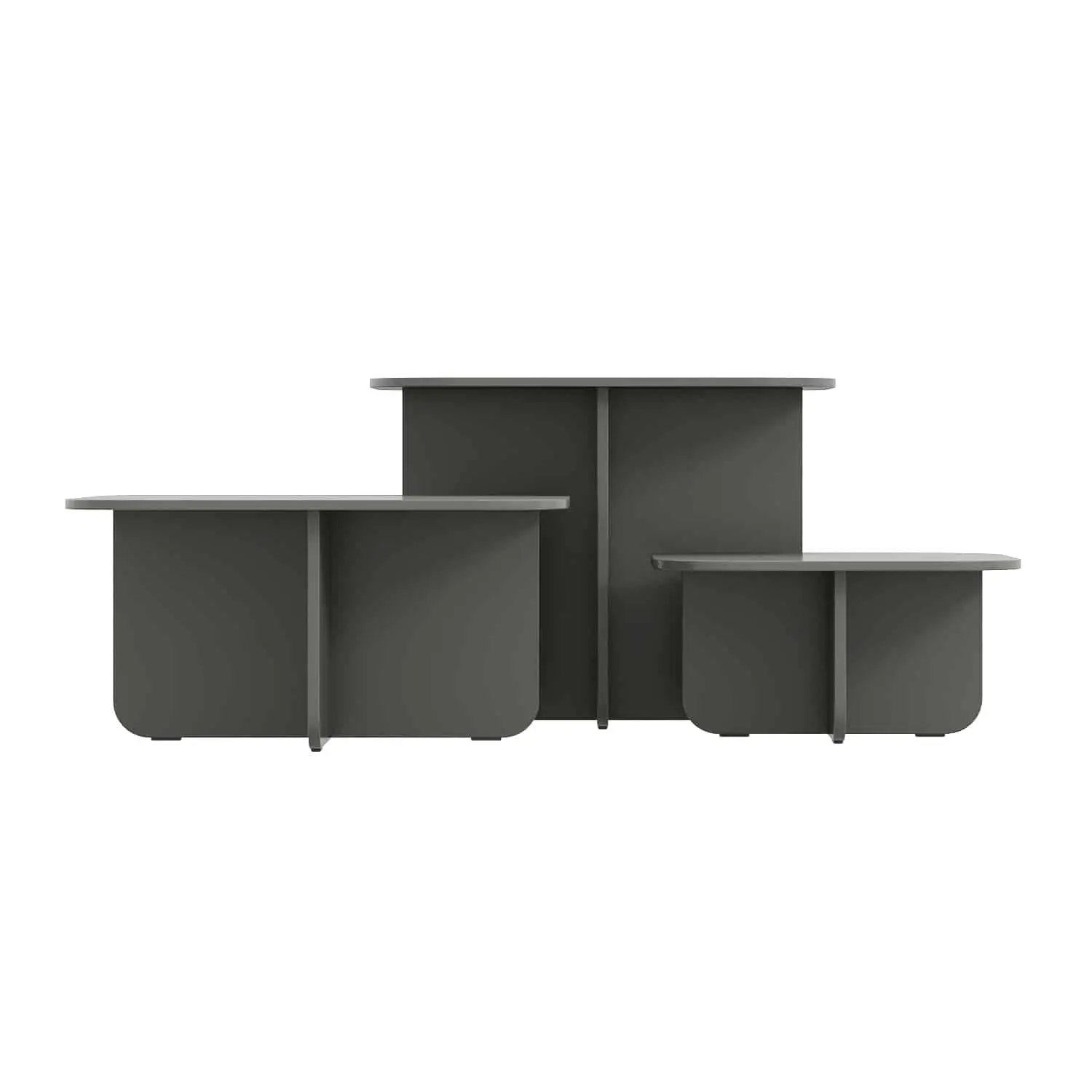 Je nachdem wie Sie die Lehnen anordnen, können nach Belieben klassische Sofas, Chaiselongues oder Ottomanen konfiguriert werden. Natürlich enthält die Kollektion auch die passenden Beistelltische. Diese bieten ausreichend Ablagefläche für Arbeitsmaterialien oder bspw. Getränke. Die Tische passen besonders schön, da hier formal die abgerundete Form der Sofas wieder aufgegriffen wird.