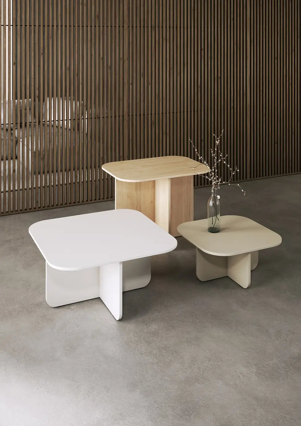Den OKA Plus Coffeetable gibt es in drei unterschiedlichen Größen und drei Höhen. Er läßt sich besonders gut an die Ecke eines Sofaelements platzieren, durch den kreuzförmig ausgebildeten Fuß. Auch als lockere Gruppe von mehreren Tischen kann man den Coffeetable nutzen.