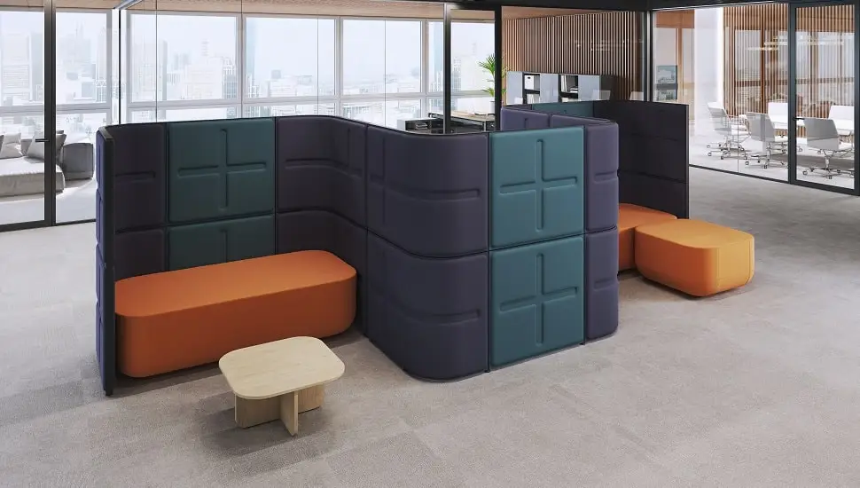 Sie möchten einen abgeschirmten Bereich gestalten? Auch dazu kann OKA Plus genutzt werden, da die Kollektion sich ideal an die OKA Pods angliedert. Hierdurch entstehen optimal abgeschirmte Ruhezonen, welche z. B. für diskrete Besprechungen genutzt werden können. Mit dieser Kombination schaffen Sie locker Arbeitssettings, die Raum für Kreativität und innovative Ideen bieten. Auch die Stromversorgung kann dabei bequem über ein mit Elektrifizierung versehenes Winkelelement erfolgen.